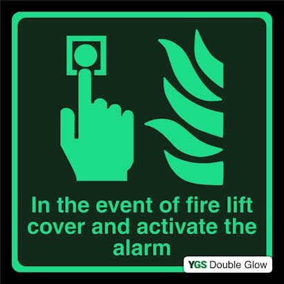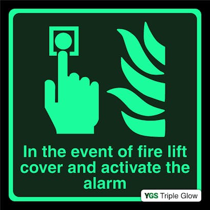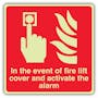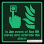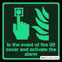 Photoluminescent In The Event Of Fire Lift Cover And Activate The Alarm - Square