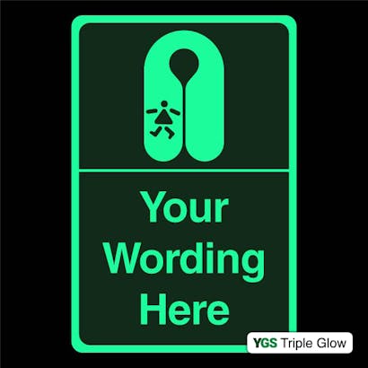 Create your own custom photoluminescent signs in seconds. Ensure your custom safety messages are easily visible when needed the most. Choose your preferred template, size and material then add wording to create your perfect sign. Add a fixing kit for quick and easy installation