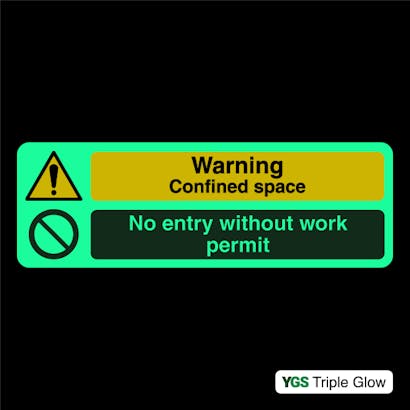 Photoluminescent Warning Confined Space - No Entry Without Work Permit - Landscape