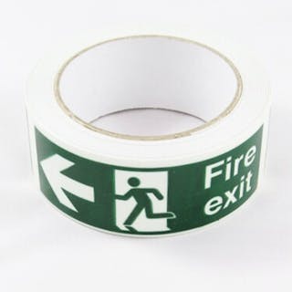 ISO-compliant glow-in-dark Fire Exit Running Man Left marking tape ideal for illuminating exit routes